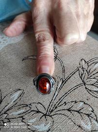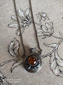 collana in argento con pietra vera ambra e anello con pietra vera ambra ... diametro anello 17