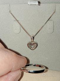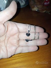 Collana e anello in argento 925 cuore con pavé di spinelli neri naturali collana lunga 45cm anello misura 15.(possibilità ha richiesta di cambiare la catenina con collana in spinelli naturale millimetrato prezzo ha parte) SCATOLA SOLO PER DIMOSTRAZIONE GIOIELLI!