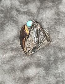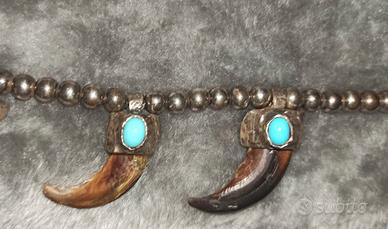 collana e anello in argento .925 con turchesi e unghie di lupo realizzati a mano