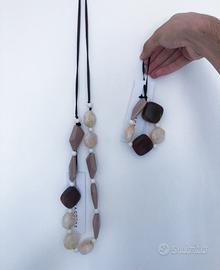 Vendo collana e bracciale abbinati di marca Caractère. Effetto pietra, con colori che vanno dal marrone scuro al bianco panna, passando per sfumature di beige. Mai stati utilizzati e dotati ancora di cartellini. Le condizioni sono impeccabili, come visibile nelle foto.
