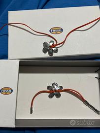 Fossil serie acciaio come nuovi coppia collana e bracciale acciaio e pelle