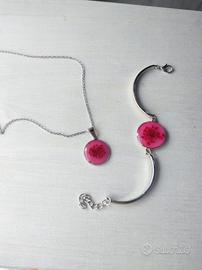 Collana e bracciale con fiori e resina