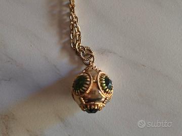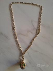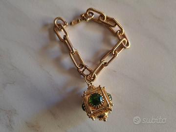 Completo parure da donna composto da collana e bracciale in metallo dorato rodiato, marca Rebecca, nuovi e originali, a catena con pendente a forma geometrica e pietre verdi. Mai indossati.