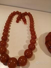 Collana e bracciale di ambra baltica acquistati nel l'ex Unione Sovietica intorno agli anni 2000. Si tratta di ambra di colore cognac probabilmente pressata perché di colore uniforme e non trasparente.