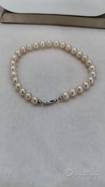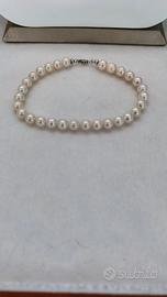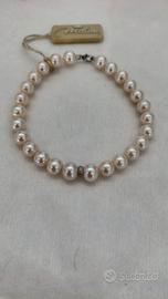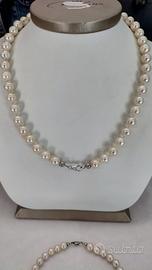 collana e bracciale in perle con inserti in oro bianco