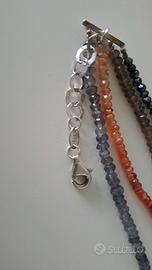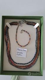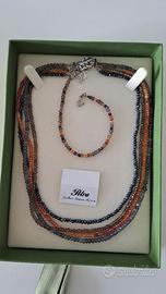 Bellissimo set di collana e bracciale realizzati da Artigiani di gioielli con pietre preziose. Sono realizzati con pietre di quarzo fumè, corniola e zaffiri, la catena è in argento 925. Completa di scatola regalo. In ottime condizioni usate pochissimo. Misura cm 48 circa.
