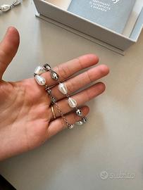 Collana girocollo in acciaio 316L con perle di conchiglia. Acciaio e perla. Prezzo originale 49€. Bracciale in acciaio 316L con perle di conchiglia. Acciaio e perla. Prezzo originale 34€. Vendo il prodotto con il sacchetto regalo incluso