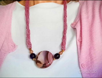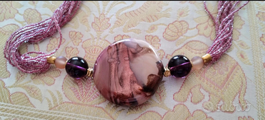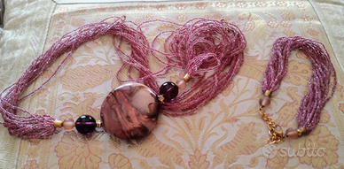 Parure in perle di vetro di Murano sui toni del rosa e marrone, portabilissima sia d'inverno che d'estate. La parure è composta da: 1 collana di lunghezza media con medaglione centrale (si può portare a fili separati o torchon) 1 braccialetto a più fili di perline cosiddette di minuteria. Davvero carina per impreziosire anche un semplice golfino. Altri modelli e combinazioni disponibili sul mio profilo!