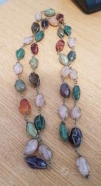 Collana e bracciale di pietre preziose semipreziose in gabbia, giada, corniola e agata trasparente ed altre pietre