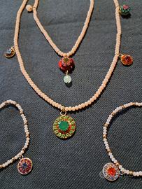 collana lunga a doppio giro con n.2 braccialetti abbinati