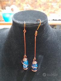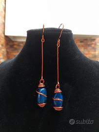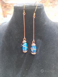collana orecchini fatte a mano materiale rame,le orecchini materiale rame con pietra blu tutto integro