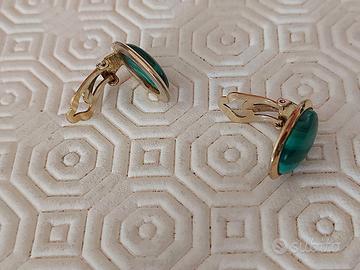 Collana malachite lunghezza cm. 62, peso gr. 97 Orecchini ovali malachite e argento dorato punzonato, cm. 2,2 x 1,5 Finitura lucida senza difetti Confezione come in foto. Possibile ritiro diretto in Jesolo zona piazza MIlano