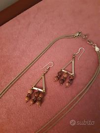 collana e orecchini metallo dorato e palline