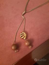 collana e orecchini in metallo dorato e palline in legno leggero