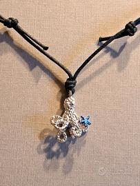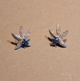 Parure composta da collana con ciondolo miniatura polpo d' argento pieno rodiato titolo 925, misura cm 3 x cm 2 spessore cm 0,80 e coppia di orecchini stelle marine anch'esse d'argento rodiato titolo 925 ciascuna misura cm 2,5 x cm 2, chiusura a farfallina con scatto di sicurezza sull' astina. Presenti bolli e punzoni dell' argento su tutto. Gioiello di oreficeria mai indossato, come nuovo. Euro 38 + spedizione