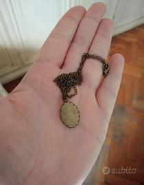 Collana e orecchini in ottone color bronzo con cammeo dipinto a mano su ceramica con base sempre in ottone bronzato, creato artigianalmente in Sardegna. Lunghezza collana circa 45 cm; Larghezza ciondolo: 13 mm; Altezza ciondolo: 18 mm