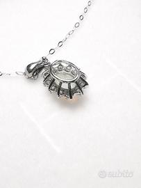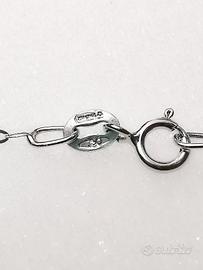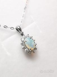 Bellissima Collana con Pendente in Oro Bianco 18 KT con Diamanti e Opale di gr 2.30 totale.