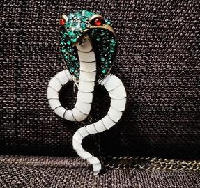 Catenina con pendente a forma di serpente. Colore: Bronzo Antico / Verde Smeraldo / Bianco Stile Gioiello: Dio Egizio / Mito / Mitologia / Creatura Mitologica / Tutankhamon / Horus / Ankh / Cleopatra / Faraone / Sfinge / Mummia Originale idea regalo per chi è appassionato dell'antico Egitto. Il prodotto è nuovo. Disponibile per la spedizione in tutta Italia al costo aggiuntivo di 8 euro.