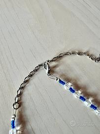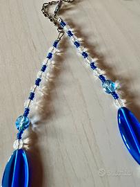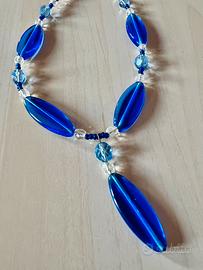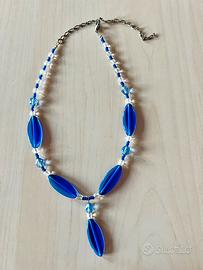 Collana elegante con perline blu intenso allungate abbinate a perline trasparenti e cristalli blu sfaccettati. Il design include un pendente centrale che dona un look raffinato e femminile. Perfetta sia per outfit casual che per occasioni speciali. Leggera e comoda da indossare. In ottime condizioni. La chiusura presenta lievi segni di usura ed è leggermente ingrigita, ma funziona perfettamente. #collanablu #collanaconperline #collanaelegante #collanadonna #gioielliblu #collanaconcristalli #collanafashion #collanapendente #bigiotteriadonna #idearegalo #stileelegante #stilevintage