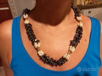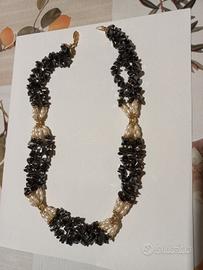 Collana nera e bianca con inserti color oro. Articolo di bigiotteria