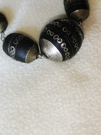 Anche le perle di ebano più piccole hanno intarsi in argento.