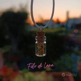 Collana delle fate delle erbe, realizzata a mano con filo regolabile e mini ampolla che contiene il fiori essaccati di camomilla🧚🏻🌺