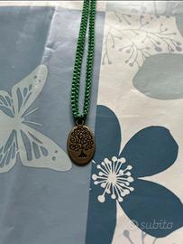 Collana (choker), fatto a mano, con nodo quadrato, ciondolo in acciaio con albero. Chiusura a fuoco di filo cerato. Chiusura regolabile.