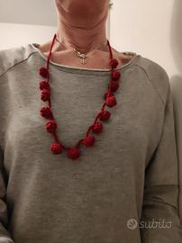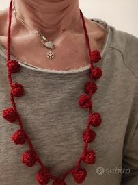 vendo collana in filo fatta a mano ad uncinetto con roselline