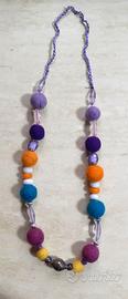 collana fatta a mano, in feltro, bellissime perline mix, murine e inserti in acciaio, originale , colorata e artigianale