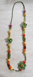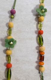 collana fatta a mano, in feltro, bellissime perline mix, murine e inserti in acciaio, originale , colorata e artigianale