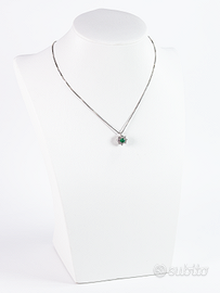 Collana fiore in oro bianco 750 18kt con smeraldo di ct 0.33 e diamanti di massa complessiva stimata 0.16ct, colore e purezza stimate G-VS.