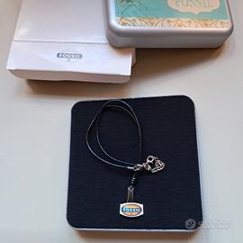 Collana Fossil, ciondolo in acciaio con inserto nero. In confezione originale. Lunghezza totale aperta 48 cm. Consegna a mani o spedizione con Tutto Subito. Mai usata