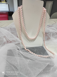 Collana lunga di perle ( finte) colore rosa. Da indossare a uno o due giri. Lunghezza 62 cm