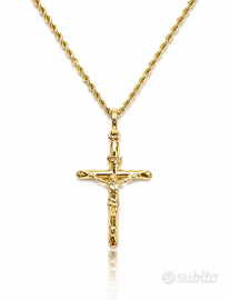 Collana funetta con pendente a forma di Croce lavorato in Oro Giallo 18kt-750 Tipologia : Gioielli in oro Grammi : 2,60 grammi circa Misura collana: 50 cm Misura pendente: 2,50 x 1,50 Spessore : 3 mm Chiusura: A gancio Punzonato e certificato 18 Kt - 750 Personalizzazione della misura Desideri una misura diversa? Saremo lieti di realizzare il gioiello secondo le tue specifiche, curando ogni dettaglio con la massima precisione. Ti invitiamo a comunicarci la misura desiderata al momento dell’ordine. Si segnala che, per le personalizzazioni, il costo finale potrebbe variare in funzione del prezzo dell’oro al momento della lavorazione. Disponibilità degli articoli Per garantire un servizio impeccabile, ti invitiamo a contattarci preventivamente per confermare la disponibilità dell’articolo prima di procedere al pagamento. Un gioiello unico Ogni creazione nasce dall’incontro tra la tradizione artigianale italiana e l’eleganza senza tempo della manifattura di lusso. I nostri gioielli vengono presentati in raffinate confezioni regalo e accompagnati dal certificato di autenticità e qualità, che ne attesta l’origine e i materiali preziosi utilizzati. La garanzia è valida 12 mesi dalla data dello scontrino fiscale. Spedizione La consegna è assicurata, tracciata e rapida in tutto il mondo tramite corrieri DHL/UPS. Immagini Le immagini dei gioielli sono puramente illustrative. Eventuali lievi differenze di colore, riflessi o dettagli sono da considerarsi normali e derivano sia da fattori tecnici sia dalla natura artigianale delle creazioni. Ogni gioiello è unico e le fotografie possono mostrare leggere variazioni rispetto al prodotto finale.