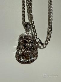 Parole chiave integrate: collana Gesù, pendente sacro, zirconi brillanti, gioiello religioso, simbolo cristiano, collana uomo donna, fede e moda, accessorio spirituale, regalo sacro, catena acciaio inox, volto di Cristo, collana con croce.