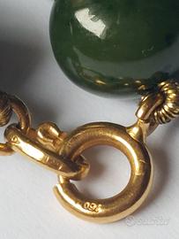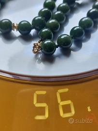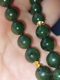 collana giada nefrite annodata a mano con perle di diam. 10mm. Moschetto di apertura/chiusura e inserti in oro 18Kt.