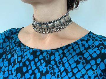 Collana tipo choker in argento brunito 800 di artigianato indiano del Rajasthan. Modello raro, unico, non produzione in serie.
