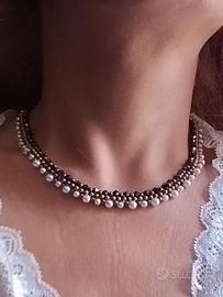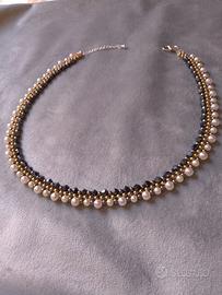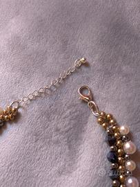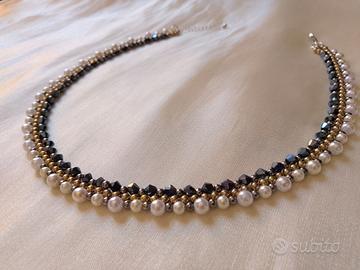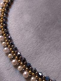 - Perle cerate e cristalli blu notte, con beads di ottone e acciaio ottonato.