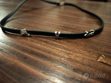 Vendo collana girocollo in caucciù/gomma nera, impreziosita da inserti decorativi color argento con piccoli dettagli luminosi.