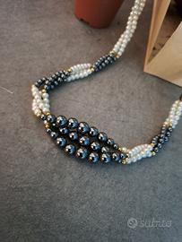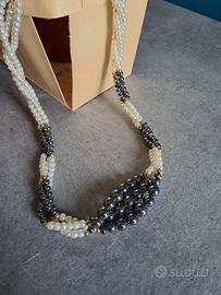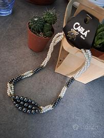Collana girocollo realizzata con fili di perline bianche e nere alternate con effetto torchon. Mai utilizzata.