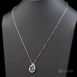 COLLANA GOCCIA ORO 18KT PENDENTE SMERALDI DIAMANTI