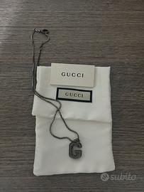 Collana d’argento con ciondolo lavorato a mano. Presenta alcuni segni dell’ossidazione dell’argento