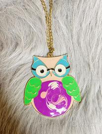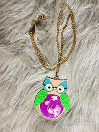 Collana lunga con gufo in metallo smaltato vintage primi anni 2000. Magica, particolare e vivace. Ideale per chi ama accessori originali ed unici. Lunghezza circa 70 cm.