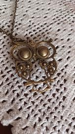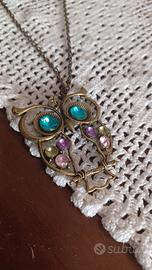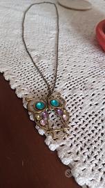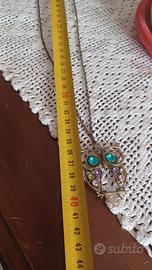 collana lunga cm.40 con pendente a gufo con pietre colorate