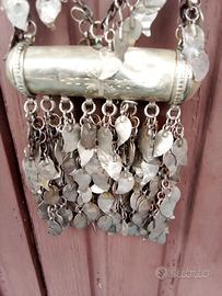 Il taweez è un porta-amuleti cilindrico apribile da un lato per inserirvi l'eventuale amuleto. Decorato su entrambi i lati da un piccolo disegno inciso nel metallo. Dovrebbe essere placcato argento o argento a basso titolo.