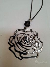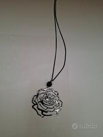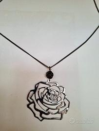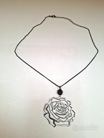 nuova, in acciaio, colore nero con ciondolo colore acciaio a forma di rosa, regolabile