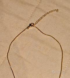 Collana in acciaio dorato, con lettera T piena di strass. Nuova e mai indossata.
