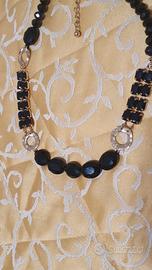 collana Nuova Mai Usata senza Nichel lunghezza cm 26 in acciaio gancio chiusura regolabile coralli sfacccettati neri spedizione tracciata