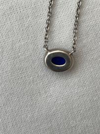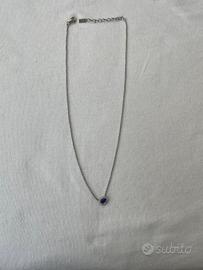 Collana a girocollo con pietra blu e zirconi laterali . Arg.925 . Mai indossata .