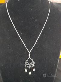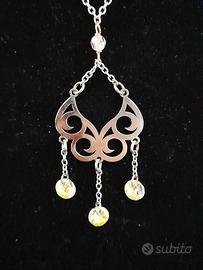 Collana in argento 925 con ciondolo attaccato alla collana con tre pietre pendenti in vetro colore come l'arcobaleno tutta integra
